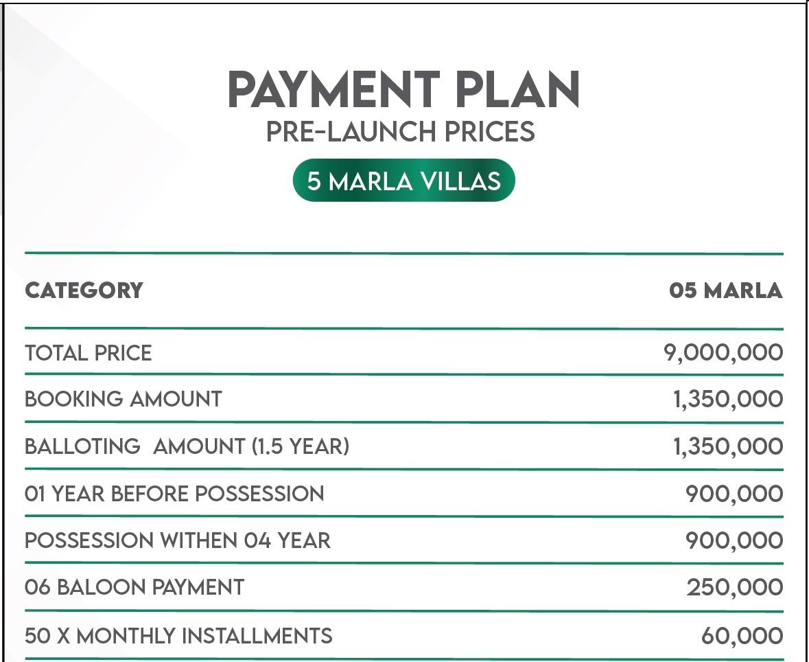 The price range starts from PKR 9,000,000. The villas are available in two types of elevation i.e. classic & Modern.